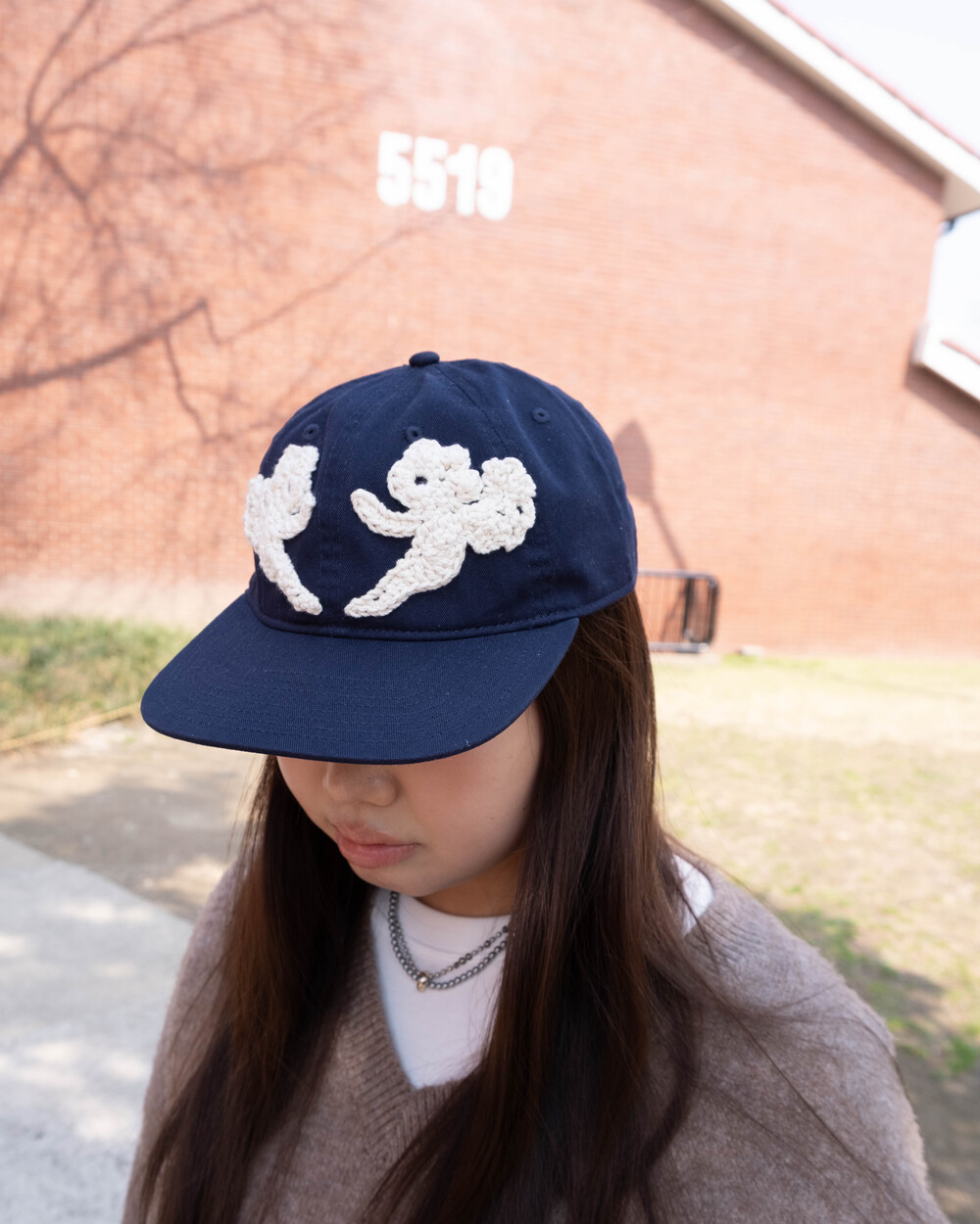 ໒꒱ 천사 패턴을 손으로 뜨개 제작해 모자 위에 하나하나 바느질하여 완성합니다.