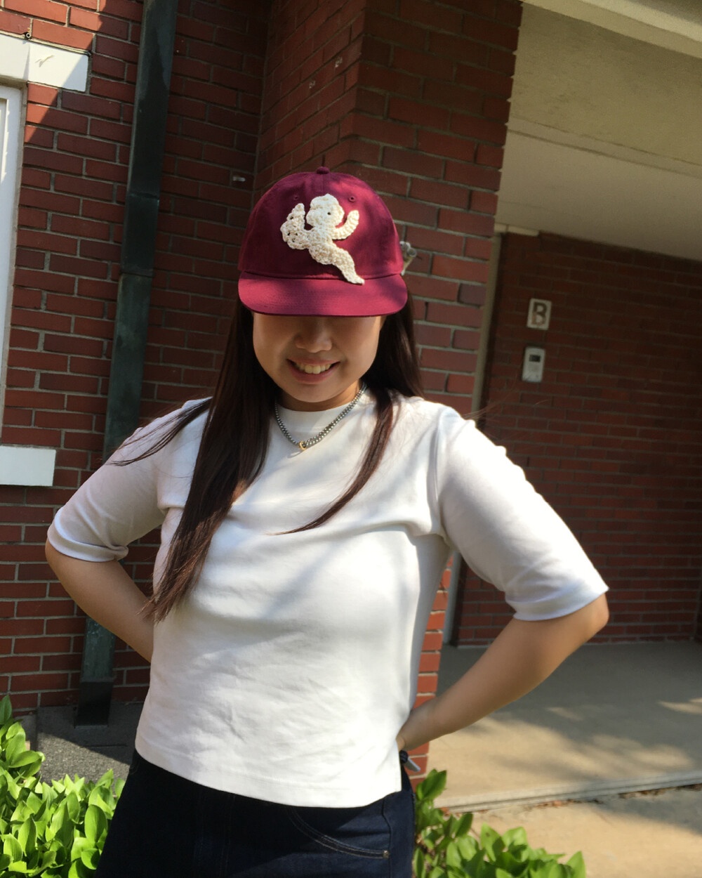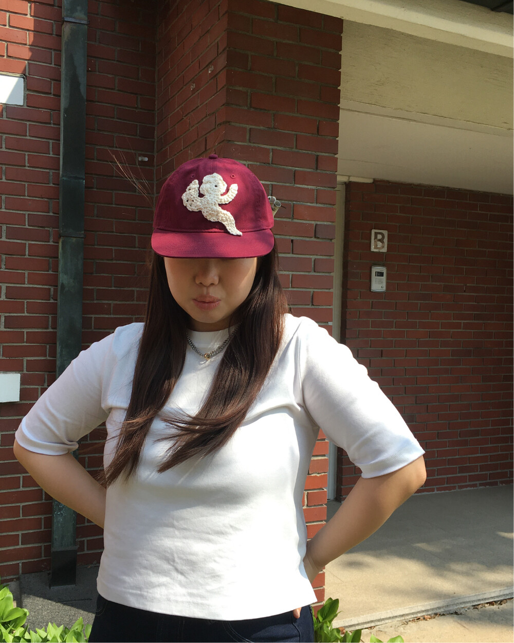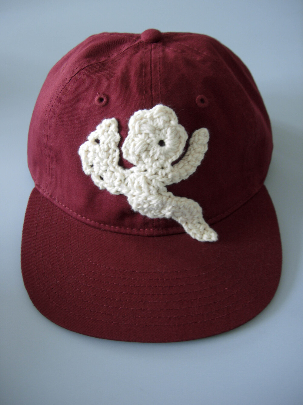 ໒꒱ 천사 패턴을 손으로 뜨개 제작해 모자 위에 하나하나 바느질하여 완성합니다.