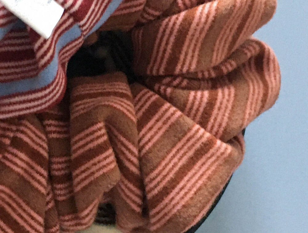 착용은 더 웨어러블 하면서 블럭 스트라이프 패턴으로 존재감이 분명한 스크런치입니다.